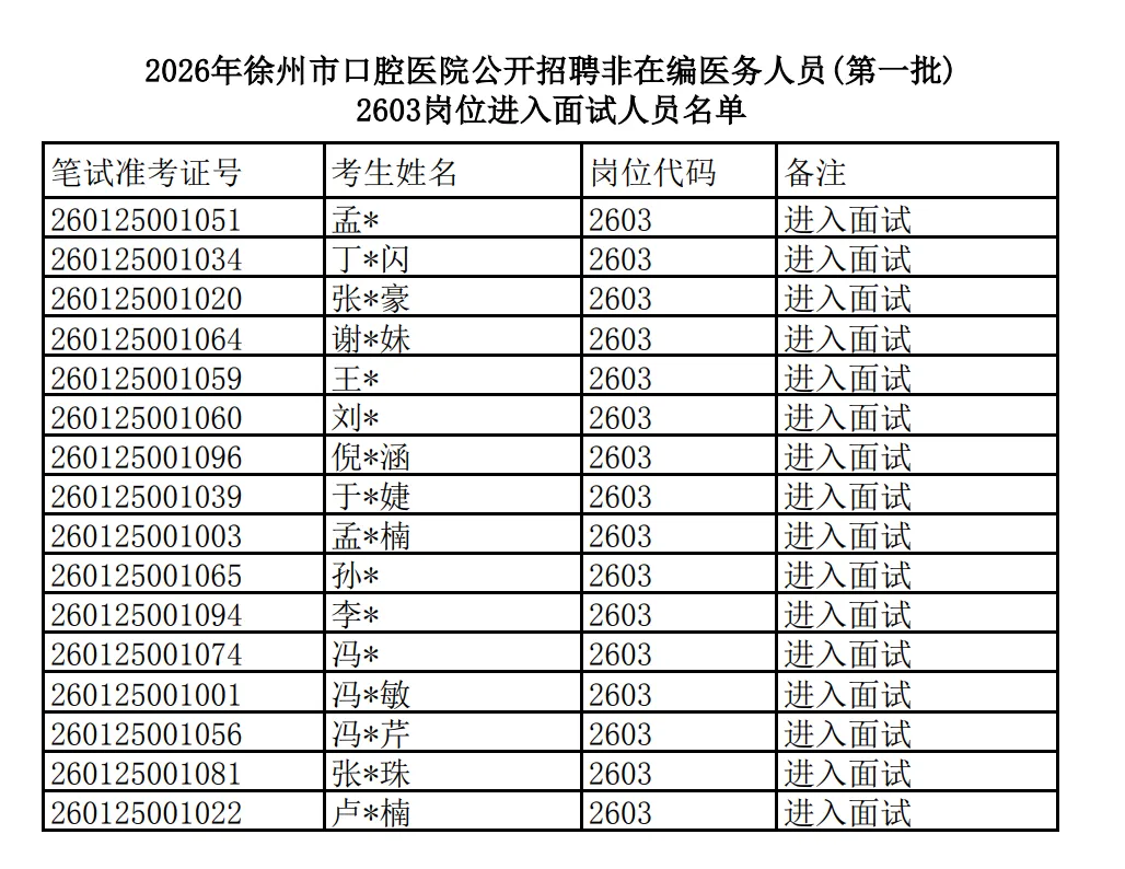 2026徐州市口腔医院招聘非在编医务人员(第一批)2602、2603岗位面试及专业实践能力考核通知