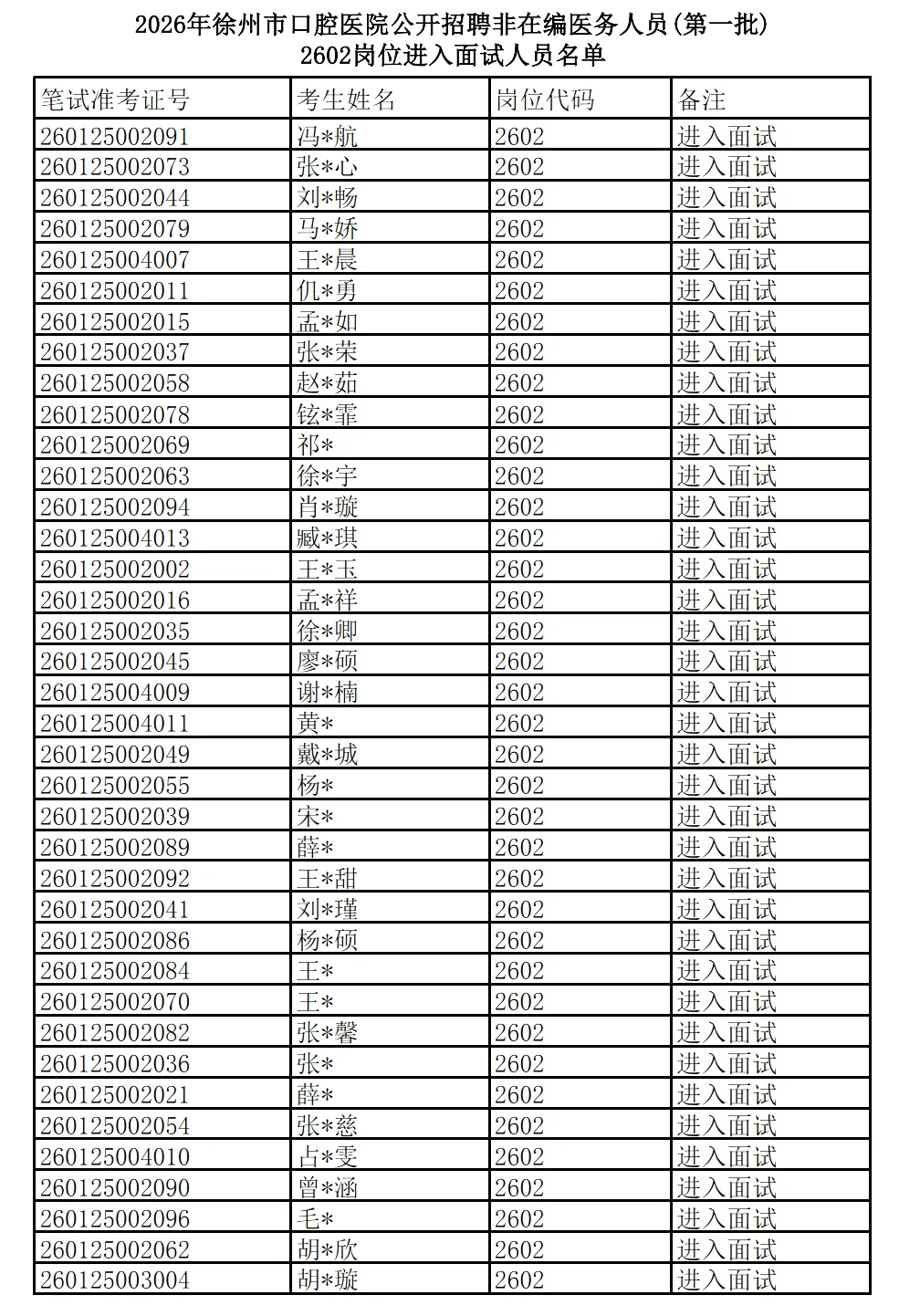>2026徐州市口腔医院招聘非在编医务人员(第一批)2602、2603岗位面试及专业实践能力考核通知