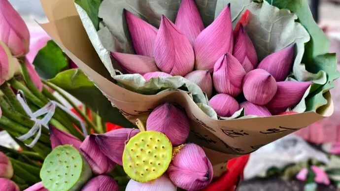 夏日清晨,斑驳光影间,当一束束红的、粉的、白的荷花,与苏州白塔西路独特的道路、树木以及穿行其中的人群交织在一起,整个市集便成为城市最鲜活的风景线,那种独属于东方美学的韵味跃然心间,让人们自然而然地想参与其中。