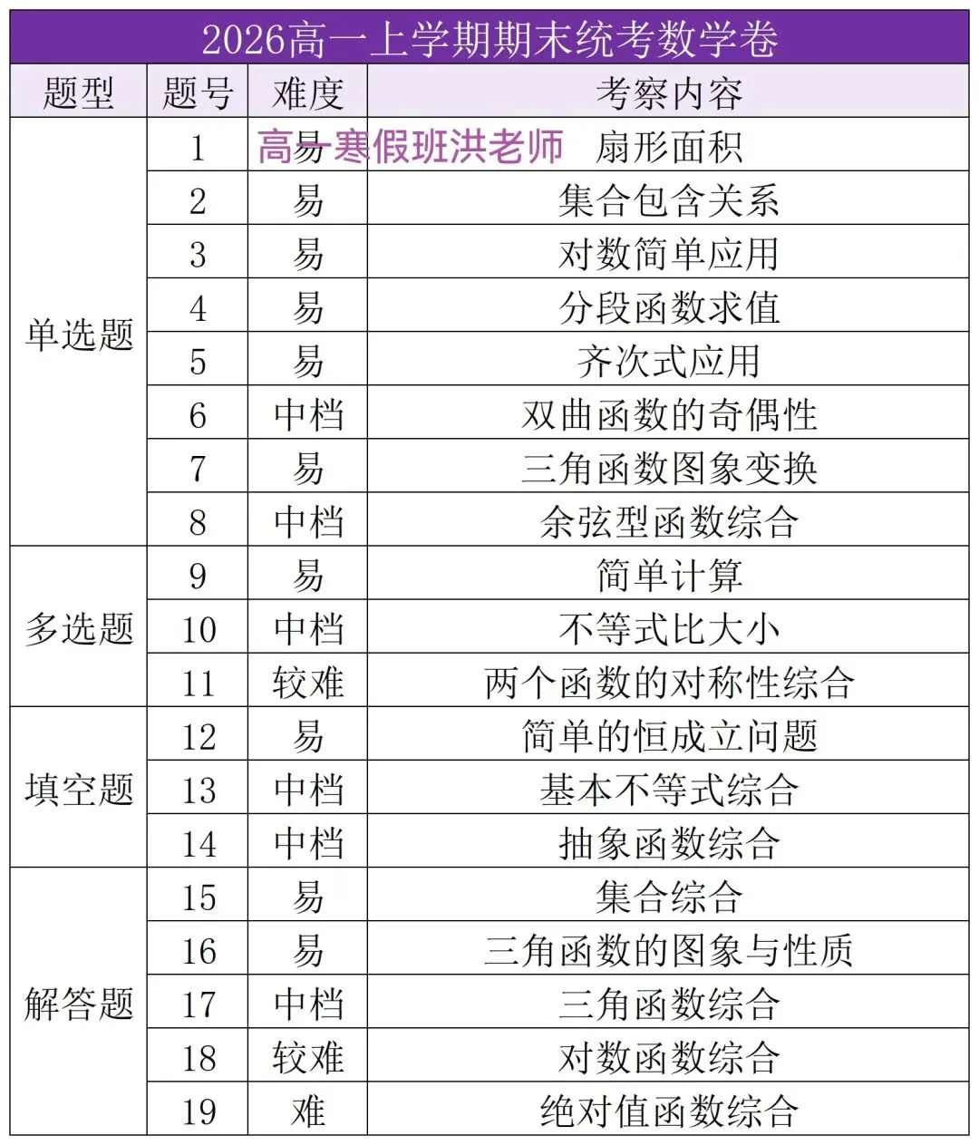 数学视频讲了表上较难题