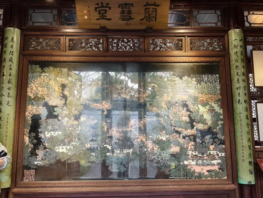进门不久,就进入兰雪堂,有拙政园漆雕全景图,第一感觉就是大,而且景点多。