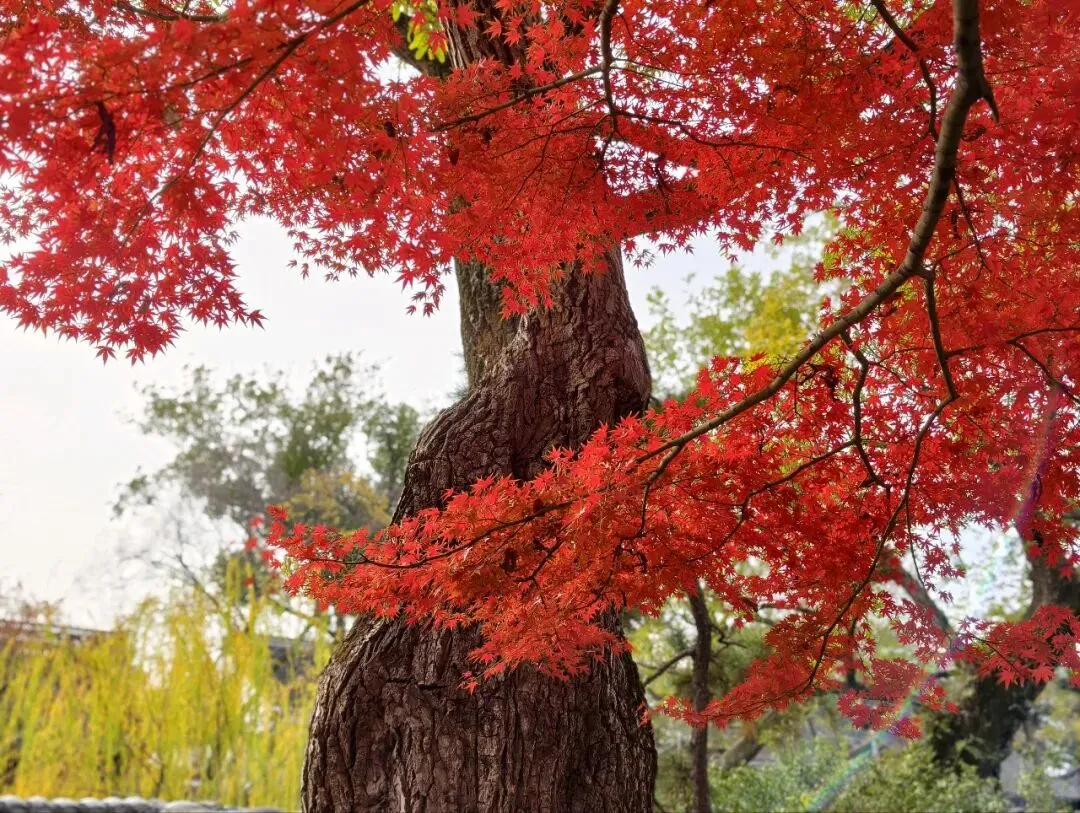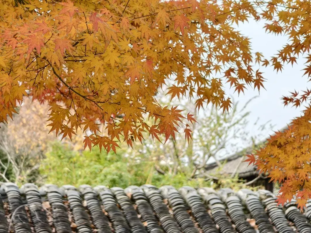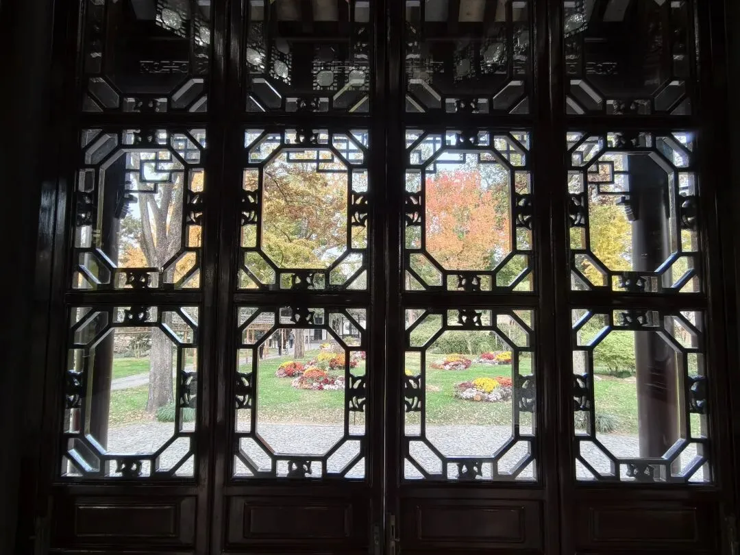 从四周的窗看出去,斑斓的秋景被分成了多个区域,又各自成景。