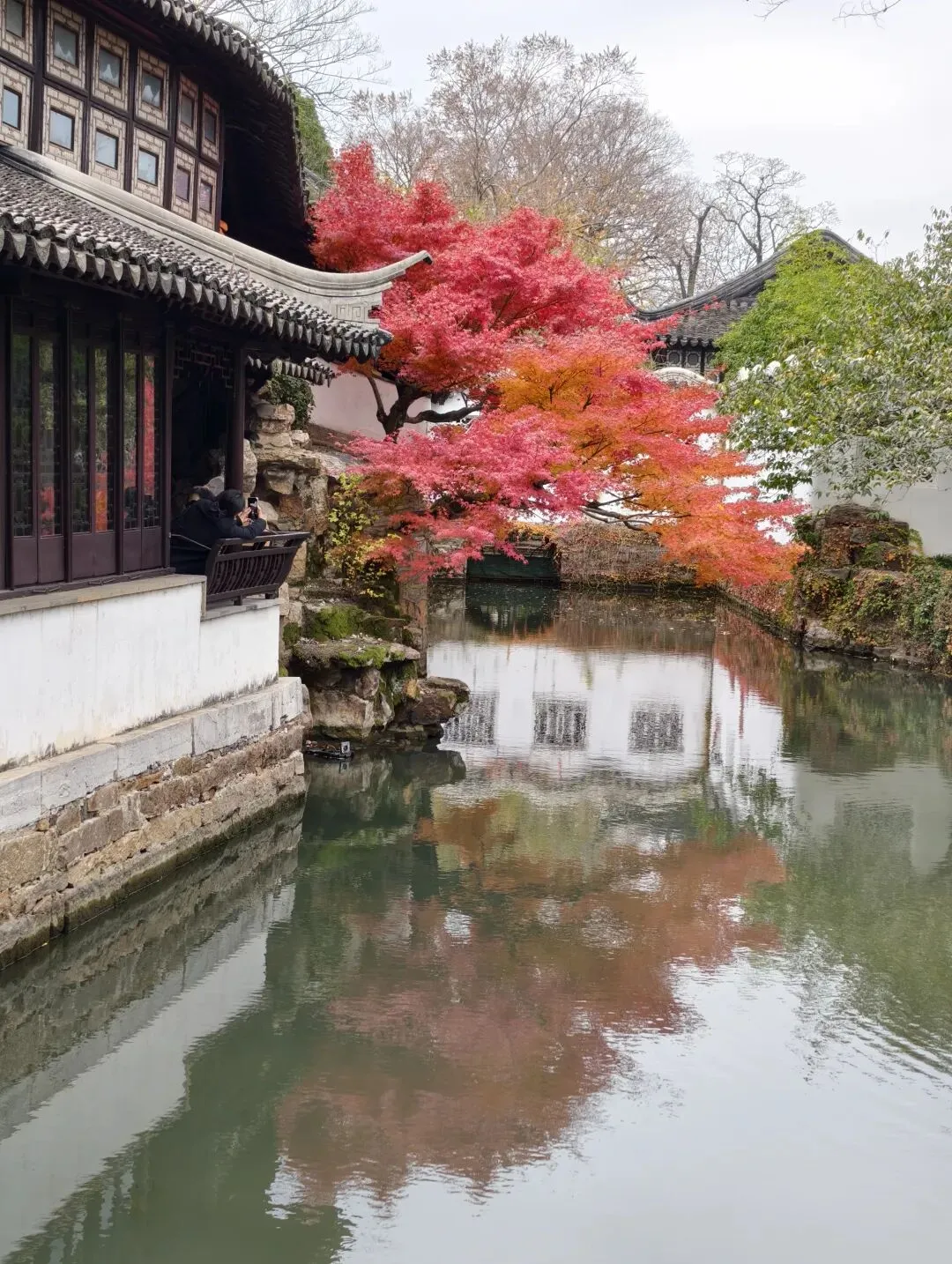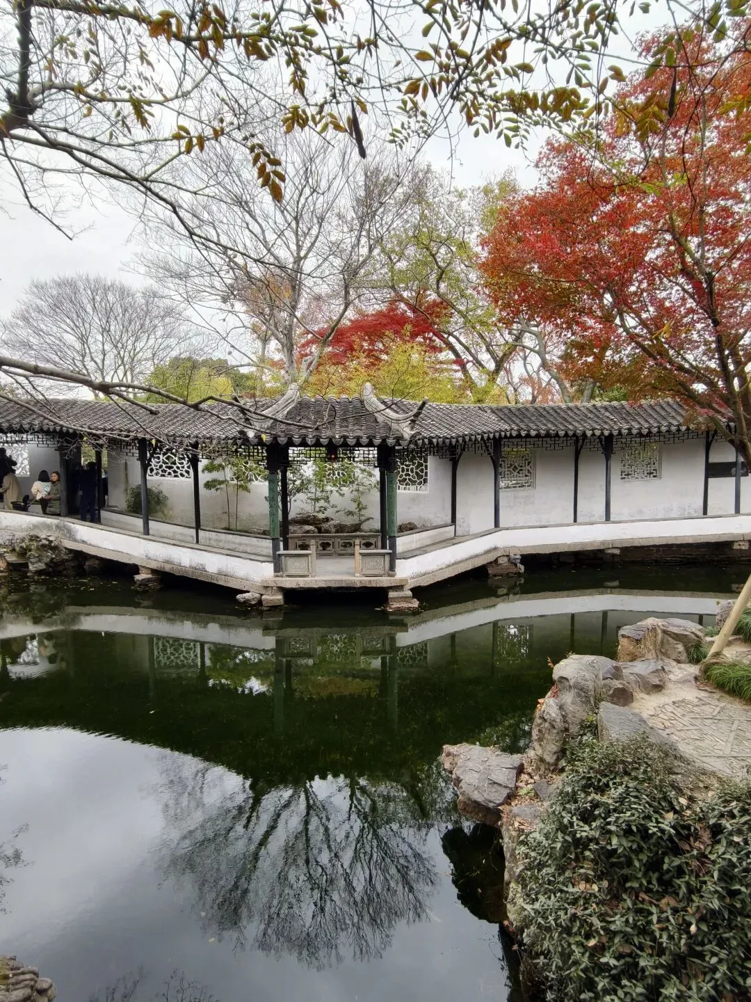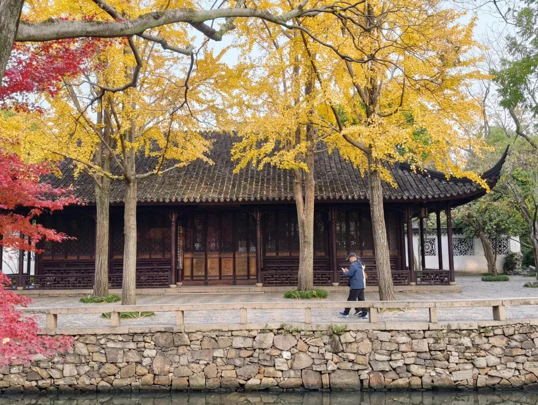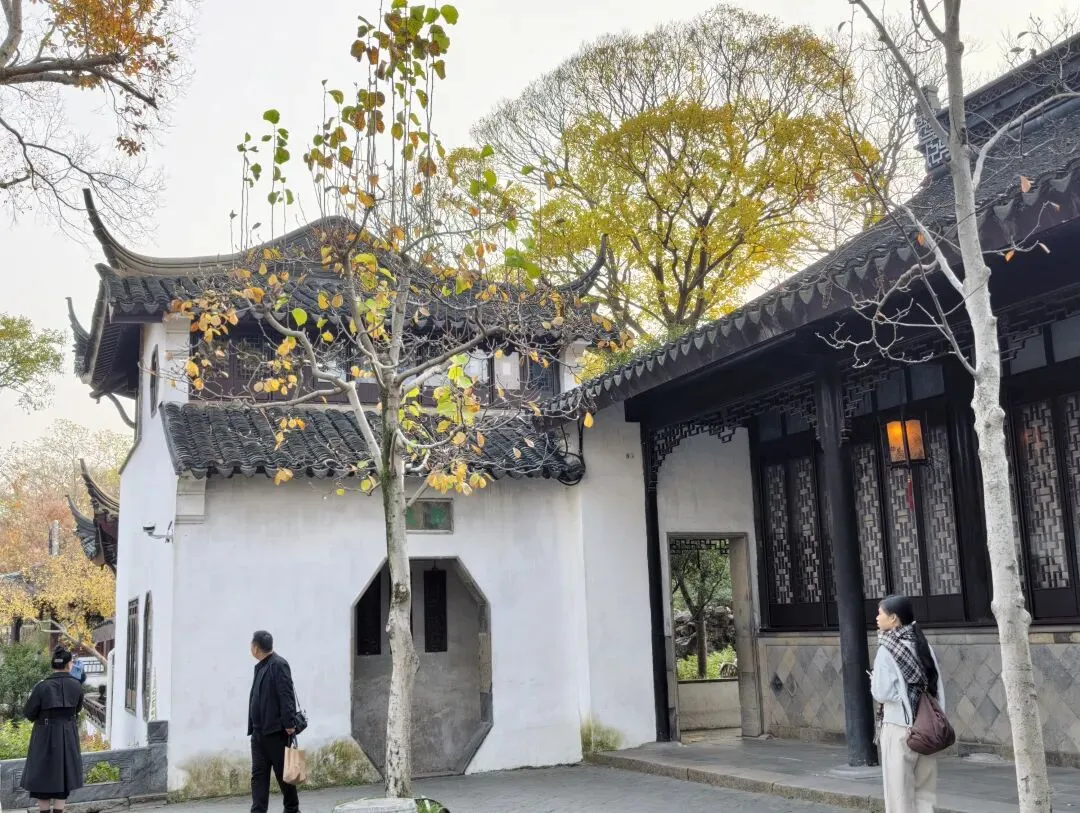 香洲的一角,名叫“野航”,粉墙黛瓦,在周边凋零的树木和斑斓的秋色里独树一帜。