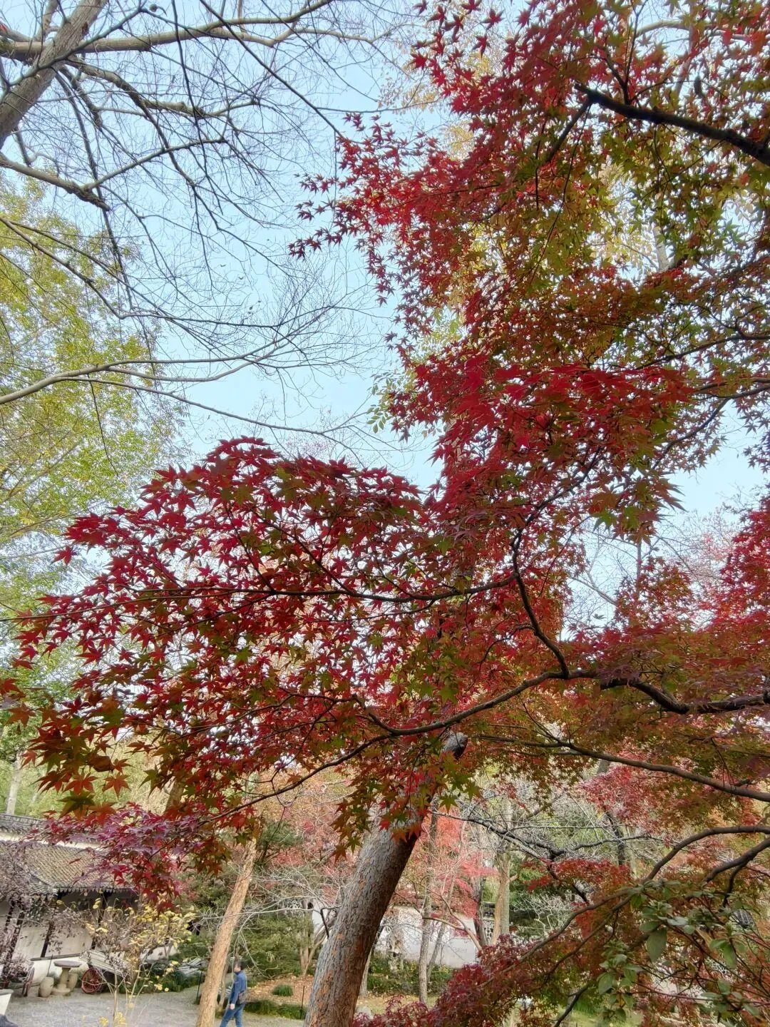 顺着导览路线走,秋色渐浓,红黄色都非常浓烈,是多云天气,如果是艳阳天,那该多么亮眼。