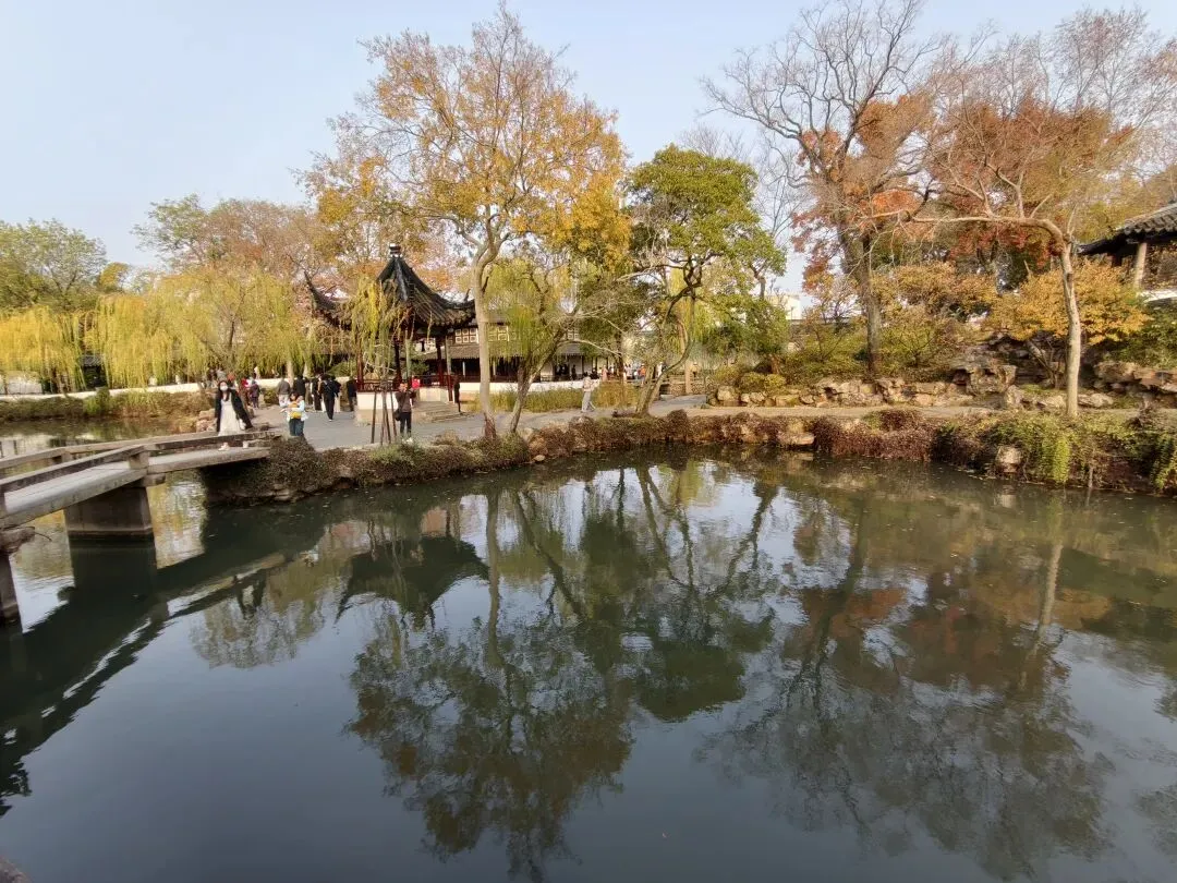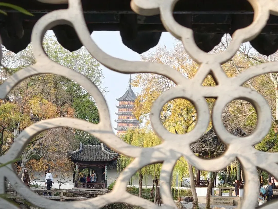昨天写到北寺塔,有和拙政园之间经典的借景。今天就到拙政园赏秋,看看借景在哪里?