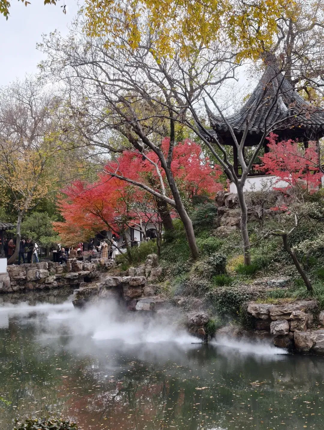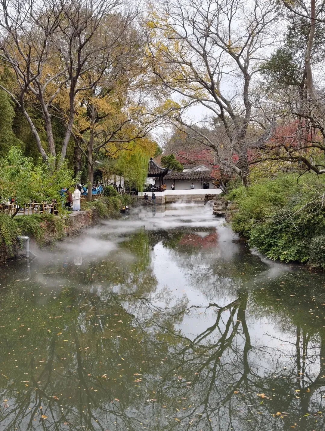 园林管理人员也是造景大师,云雾缭绕中如入仙境。
