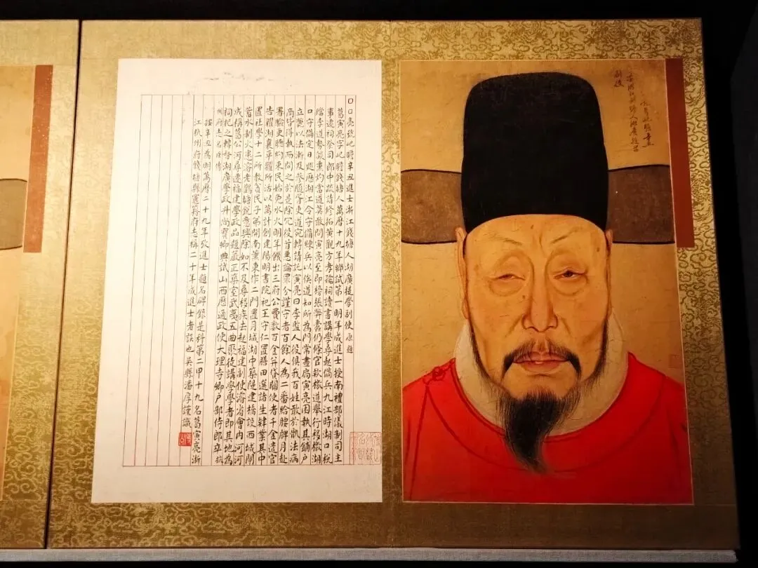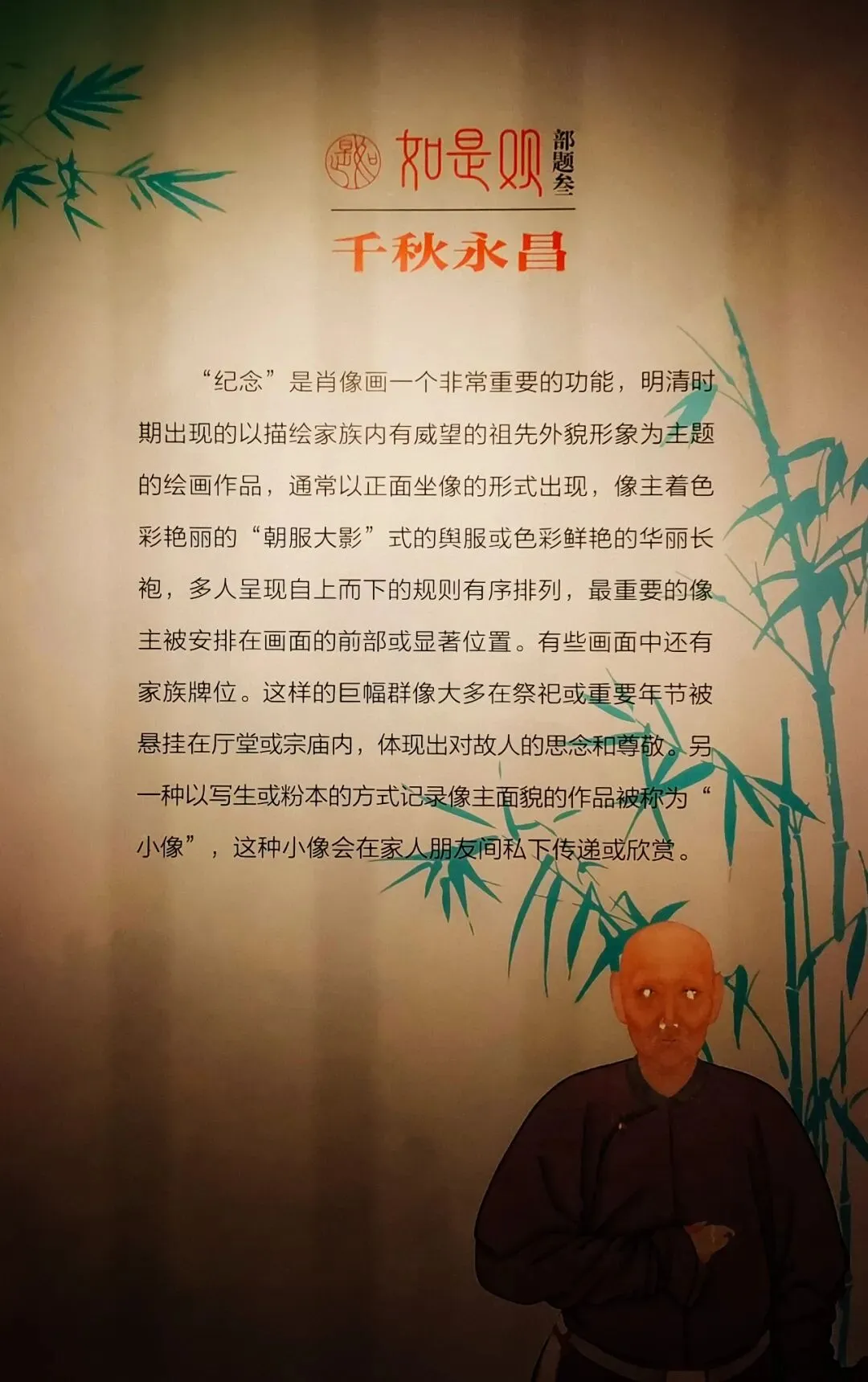 展览以"敦伦明理""移情逐景""千秋永昌"三大板块构建叙事框架。第一板块聚焦明代官员朝服像,展现礼制规范下的肖像画特征;第二板块通过文人雅集场景呈现生活美学;第三板块突出历史人物肖像的教化功能。这种分类方式系统梳理了明清肖像画的社会功能与艺术表达。