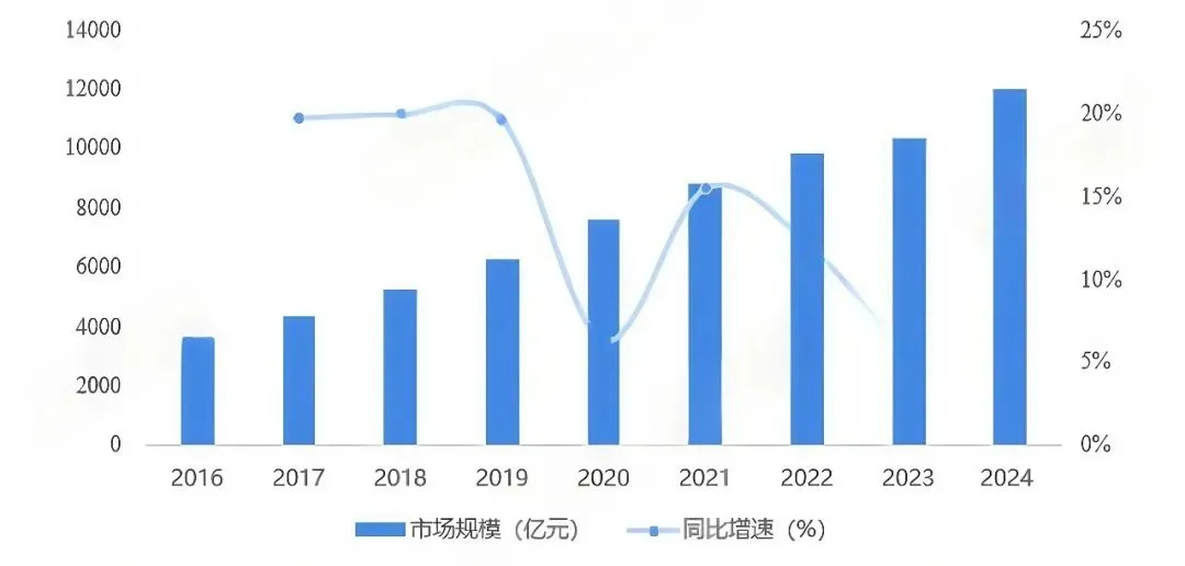 伴随着中国医疗健康事业的发展,国内医疗器械行业市场规模持续扩大。根据《中国医疗器械行业蓝皮书(2024)》统计,2016-2023年市场规模逐年攀升,2023年已达10328亿元,同比增长5.07%。