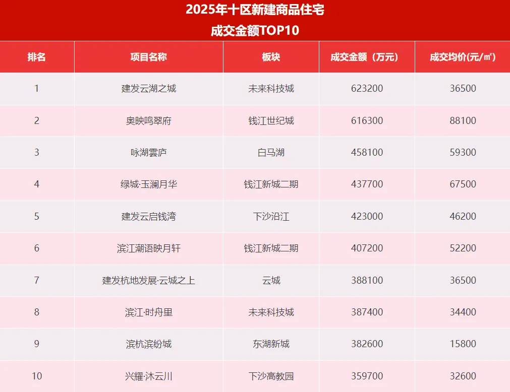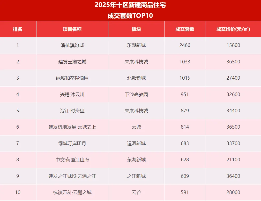 2025年,在杭州成交金额排名前10的榜单中,有楼盘的成交单价仅15800元/㎡(滨杭滨纷城)。这样的价格,放在苏州,也是非常便宜的存在。
