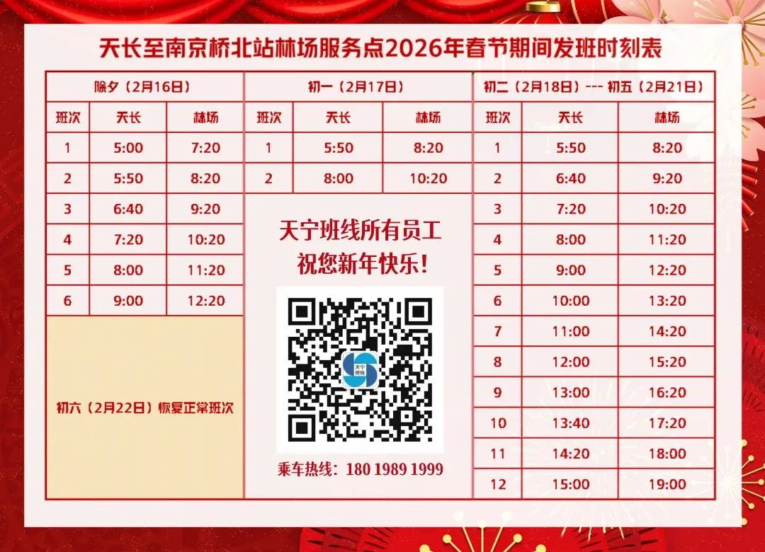 【最新】天长至南京2026年春节发班时刻表