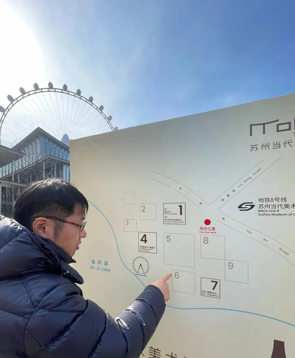 场馆位于苏州工业园区湖东CBD片区,右岸街西南侧,紧邻金鸡湖及摩天轮,占地面积4.88万平方米,总建筑面积约5.95万平方米,展厅面积约1.13万平方米。