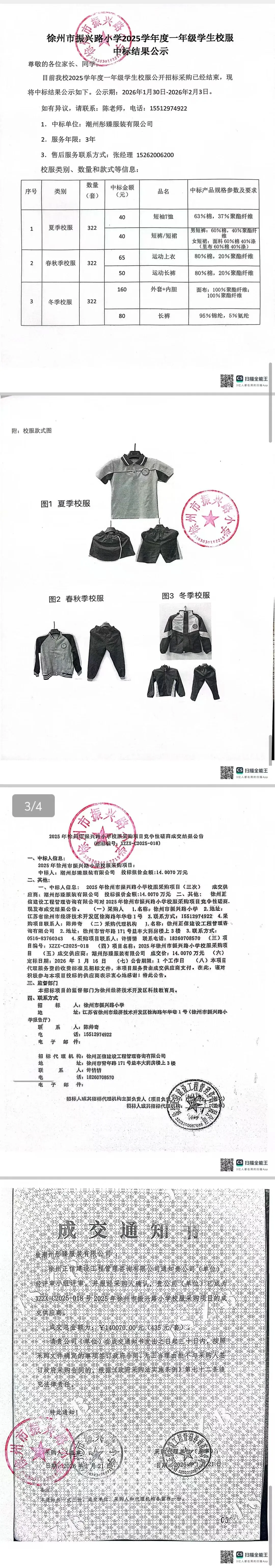 徐州市振兴路小学2025学年度一年级学生校服中标结果公示