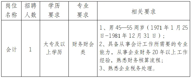 面向社会公开招聘1名辅助会计,具体招聘条件详见下方《岗位信息表》。