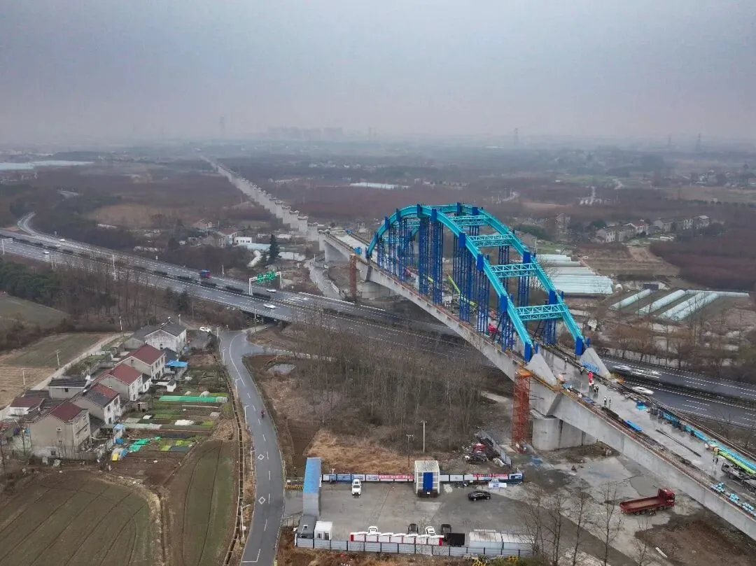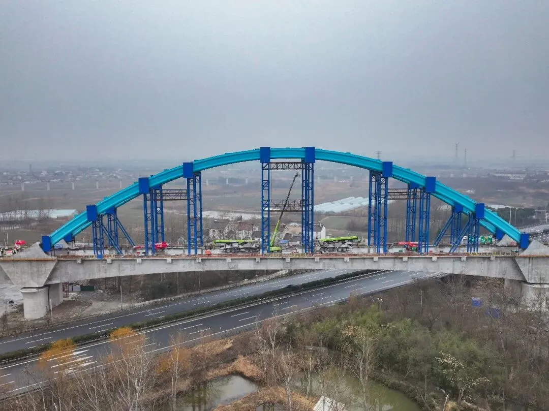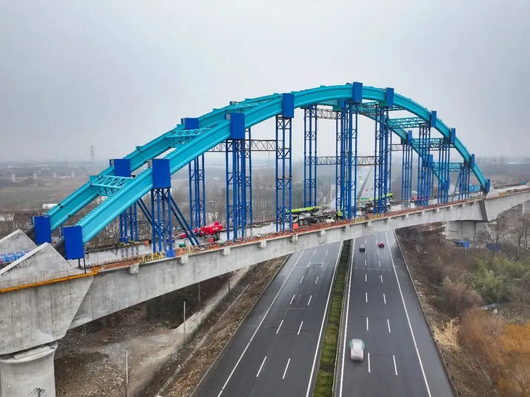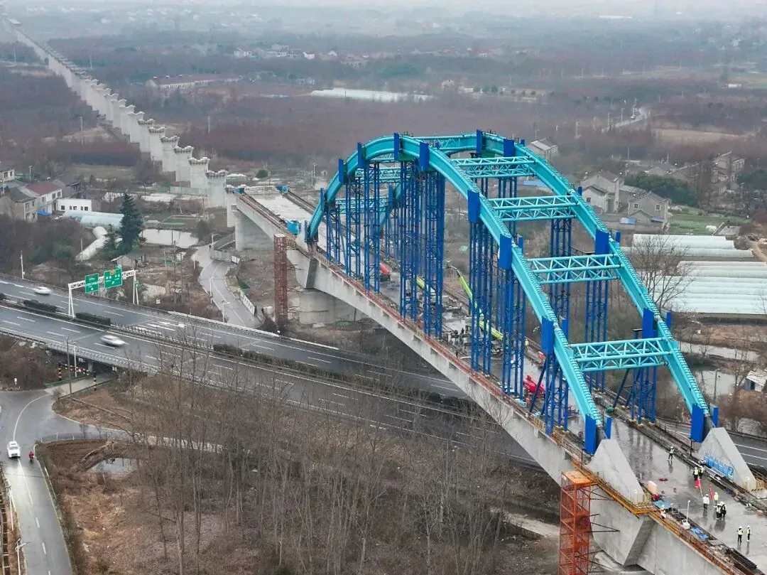 近日,由中铁四局承建的宁淮城际铁路6标一分部跨南京绕城高速156米连续梁钢构拱顺利合龙,标志着工程主体结构施工基本完成,为后续全线建成通车奠定了坚实基础。