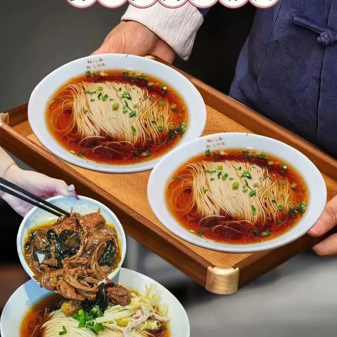 面条制作:选用龙须细面(直径约1毫米),煮制后呈现“观音头”(顶部蓬松)、“鲤鱼背”(中部微拱)形态,需达到“三烫”(面烫、汤烫、碗烫)标准。