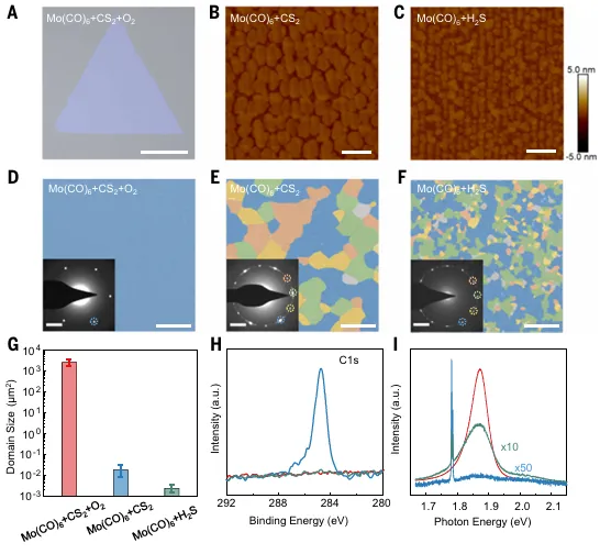 图2:通过oxy-MOCVD和常规MOCVD生长的二硫化钼。