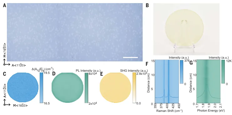 图4:6英寸单晶二硫化钼晶圆的均匀性表征。