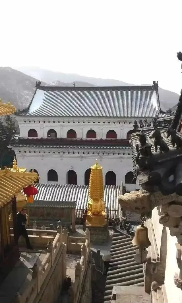 这处山西五台显通寺的无梁殿,是为佛门鲁班妙峰法师的又一杰作。其又名七处九会殿,因释迦牟尼成佛之后讲解《华严经》,在七个地方讲了九次才讲完,是为明万历三十四年(1606),明神宗授命妙峰法师主持建造的一座华严道场。