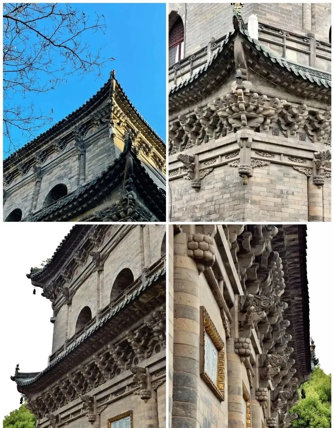无梁殿檐下、转角、补间仿木砖构细节
