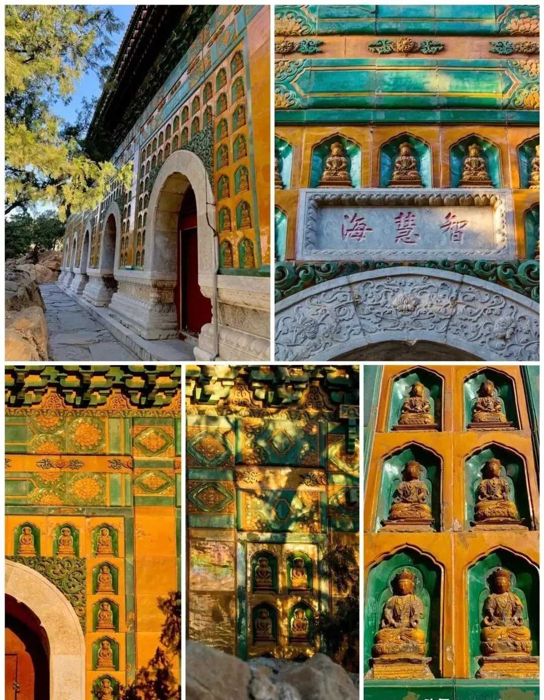 清代的无梁建筑亦不少见,仅以此处智慧海为代表。“智慧海”,本意是赞扬佛的智慧如海,佛法无边,其为颐和园最高处的一座佛殿建筑,始建于清乾隆年间。