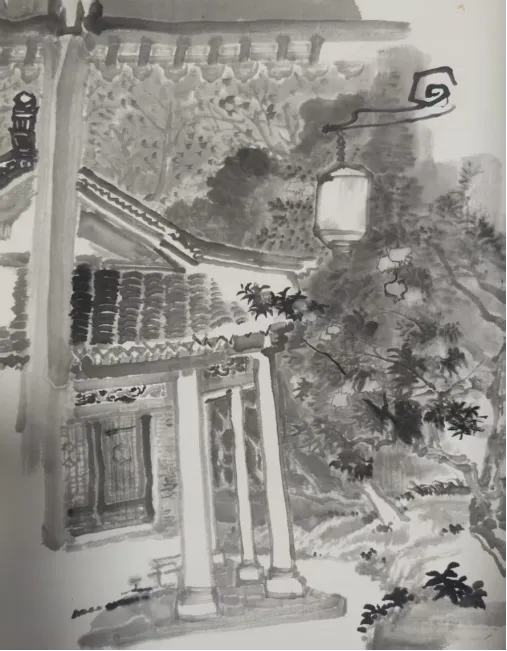 唐二伟 国画《公园一角》