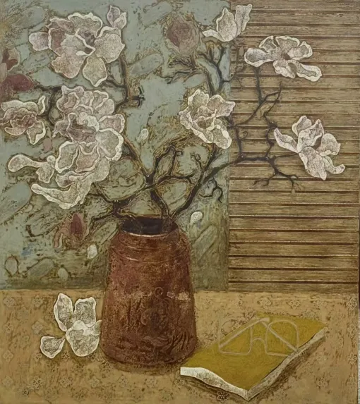 梁歆悦漆画《玉兰花开》
