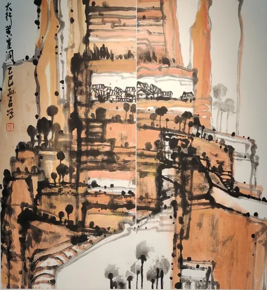 孙猛中国画《太行黄崖洞》