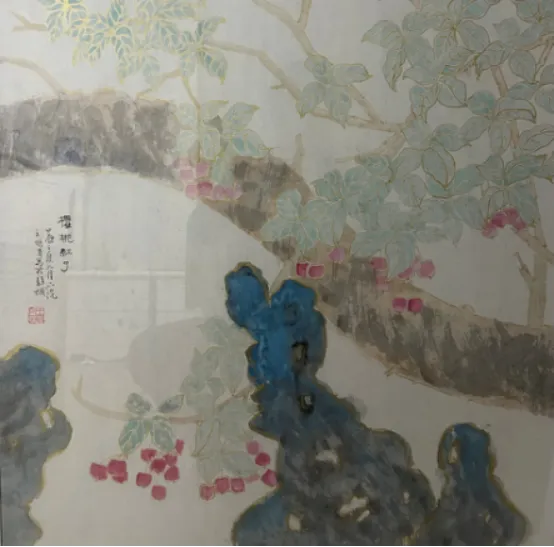 王明月中国画《樱桃红了》