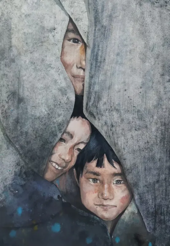 裴硕水彩《躲猫猫》