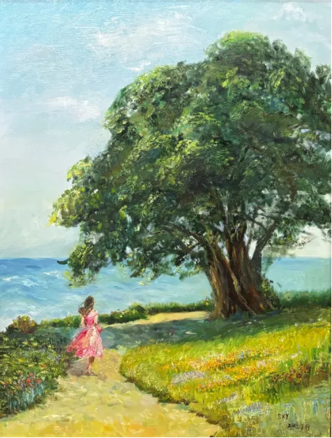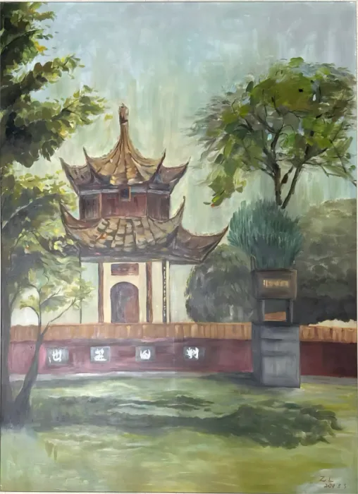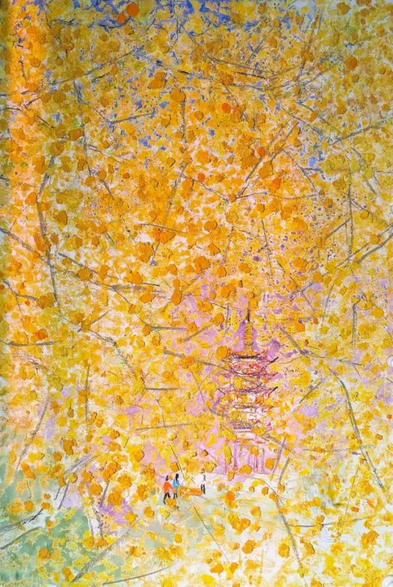 孙静综合材料《杏林塔影》