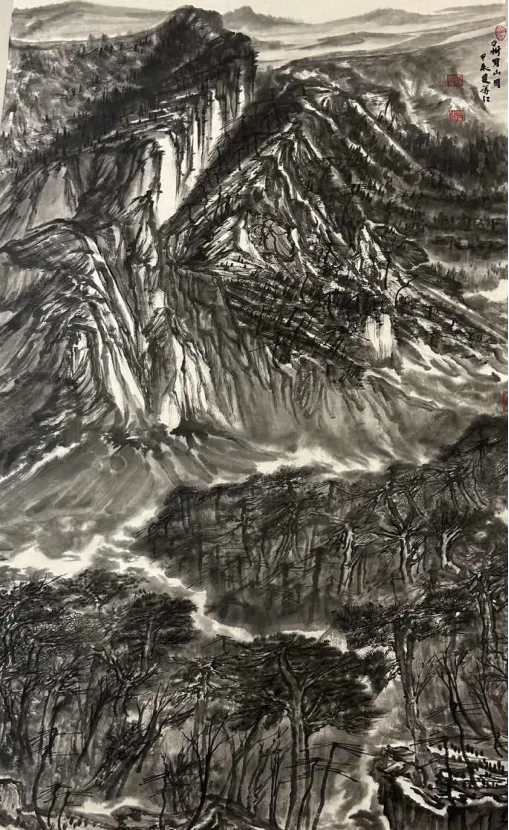 蒋红中国画《万树周山图》