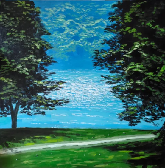 向薇 丙烯画 《湖镜》