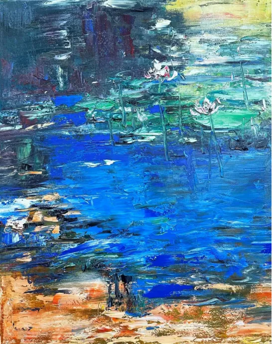 庞博丙烯画《金缕蓝絮》