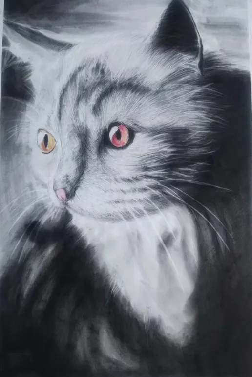 丁蕊炭笔《猫》