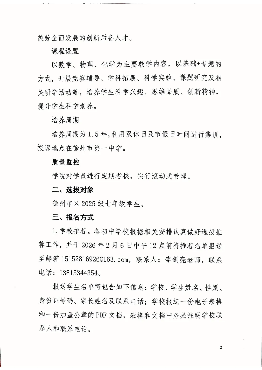 徐州一中最新发布!关于做好淮海少年科学院2025级学员选拔工作的通知