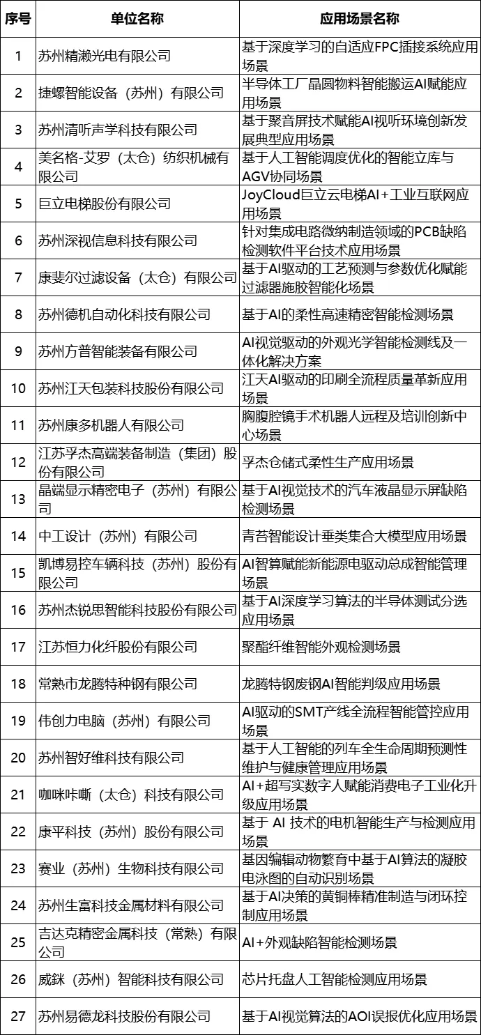 苏州丨2026年人工智能赋能新型工业化典型应用场景(第一批)名单公示
