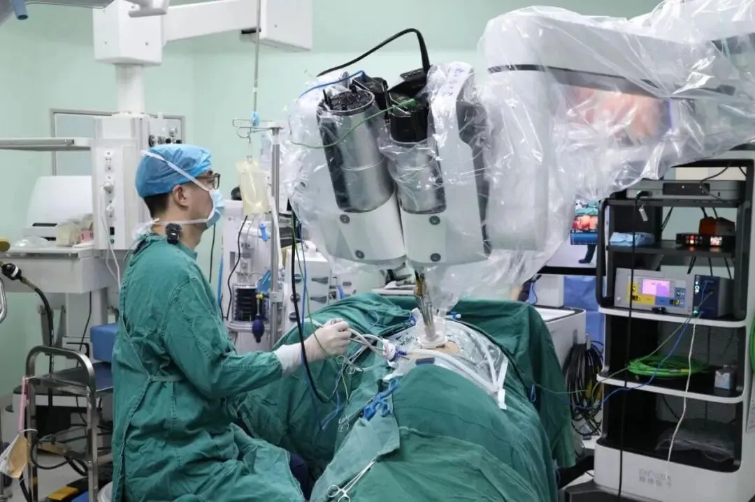 此次手术中,杨杰团队选择腰侧切口入路,借助机器人自由度机械臂的540°旋转功能,在狭窄空间内完成组织游离、血管结扎等关键操作。“单孔手术要求器械‘各司其职’却不能‘互撞打架’,机械臂的灵活性必须超越人手极限。”杨杰介绍,机器人的低延时控制系统和震颤过滤技术,让他在控制台的每一个细微动作,都能精准转化为机械臂的毫米级操作,术中几乎没有出血。