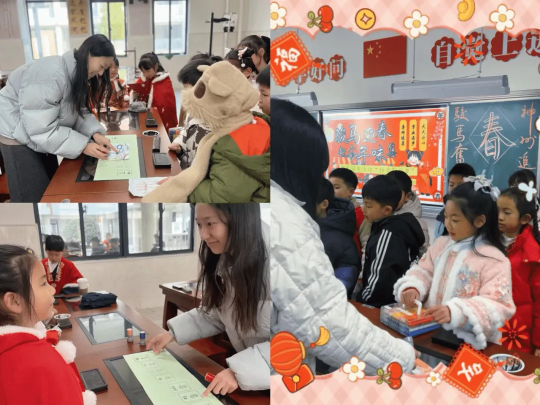 为给一年级学生搭建一个展现自我、体验成长的舞台,南京市游府西街小学浦口分校于2026年1月28日,开展了以“骏马迎春,赶个年味集”为主题的期末无纸化测评活动。孩子们提前精心设计、亲手制作闯关卡,一张张充满童趣与巧思的卡片,既承载着大家的期待,也成为本次活动独有的纪念。