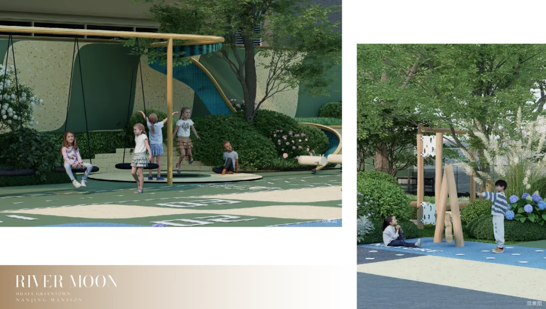于聚会花园内打造专属亲子天地,以景观设计通过链接人和自然的互动,提升居住者的幸福感。