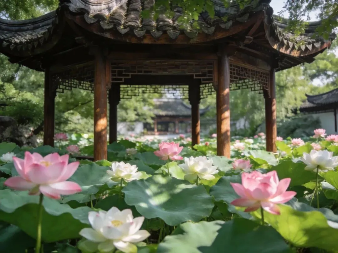 给大家举个例子,苏州的拙政园里有个「荷风四面亭」,夏天的时候,满池的荷花盛开,你坐在亭子里,既能闻到荷花的香味,又能看到蜻蜓在荷叶上飞舞,耳边还有蝉鸣和蛙叫,这就是「应时而借」的夏天。而到了秋天,荷花谢了,荷叶开始变黄,你再坐在亭子里,看到的就是「留得残荷听雨声」的意境,又是另一种味道。