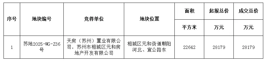 >28179万元!苏州一地块底价成交