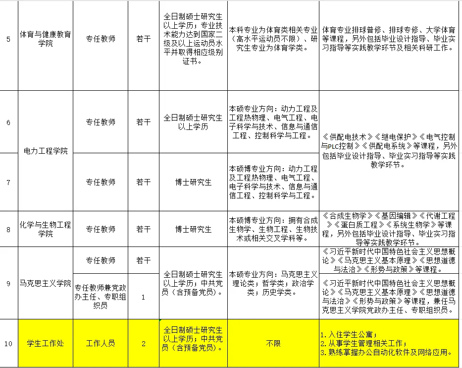 (四)具备一定的教学、科研能力,能够承担相关课程的教学、学科专业建设、实验室建设和科研创新等工作;身心健康,能够履行教师岗位职责;能适应学校的人才培养需要,有一定的发展潜力。