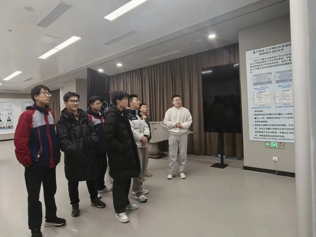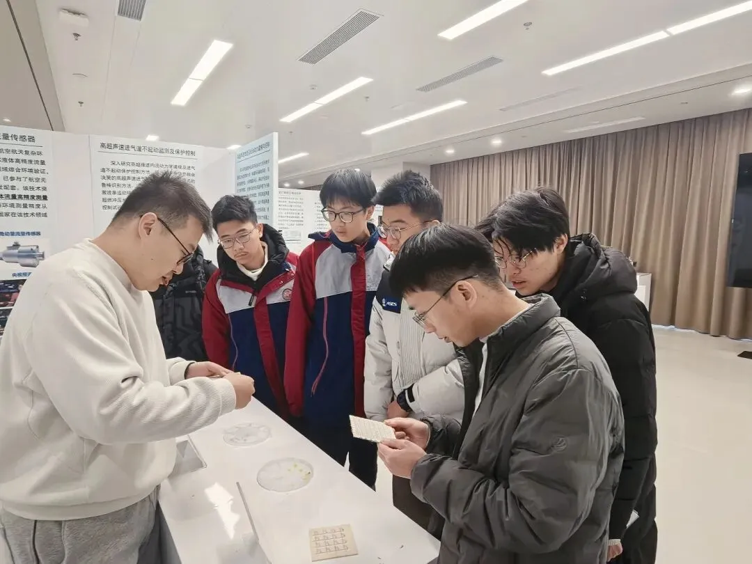 在导师团队高进副教授的引导和介绍下,同学们有序参观了哈工大苏州高研院的科技成果展厅。展厅内陈列的多项高水平科研成果、模型和实物,特别是与高超声速技术相关的部分介绍,让书本上的理论变成了可视可感的成就,同学们纷纷驻足,仔细观看、询问,感受国家科技创新的强劲脉搏。