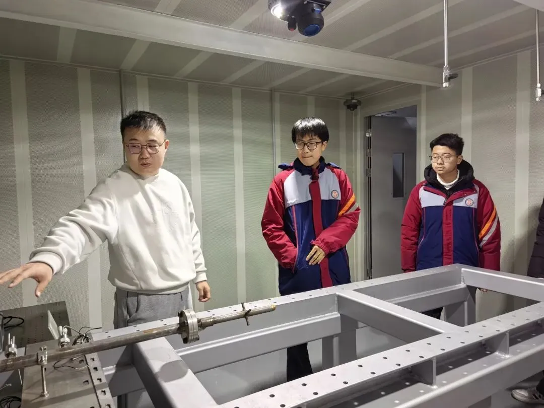 随后,同学们进入了更为核心的实验室区域。在符合安全规范的前提下,同学们近距离观察了部分用于前沿研究的实验设备和装置,聆听了团队研究人员关于实验原理、技术挑战和攻关过程的简要介绍。严谨的科研氛围、精密的仪器设备,让学子们对科学家们的日常工作有了更直观的认识,也对“工匠精神”和“科研报国”的内涵有了更深刻的体会。