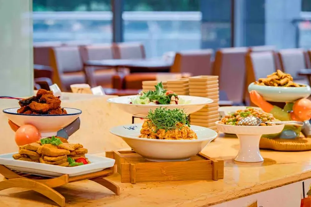 苏食锦中餐厅则提供经典扬菜为主,本地特色菜、时令菜为辅的江苏特色菜肴。此外,还有九个豪华中餐包间风格迥异,以词牌名命名,适合亲朋好友欢聚。