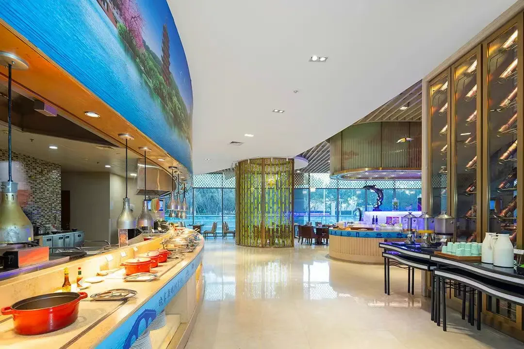 金海湾自助餐厅提供荟萃中式自助、西式佳肴和亚洲美馔。每日自助早餐就在此享用,种类选择很多,中西式皆有,还有许多江南特色的小点心、煎饼锅贴等,当然也不要错过苏式面、小馄饨等。