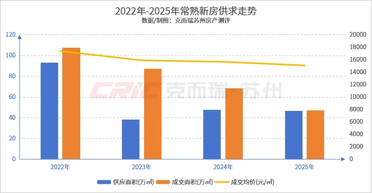 整体来看,2025年常熟新房市场表现同样为量缩价稳,这与苏州市区的表现是相一致的。