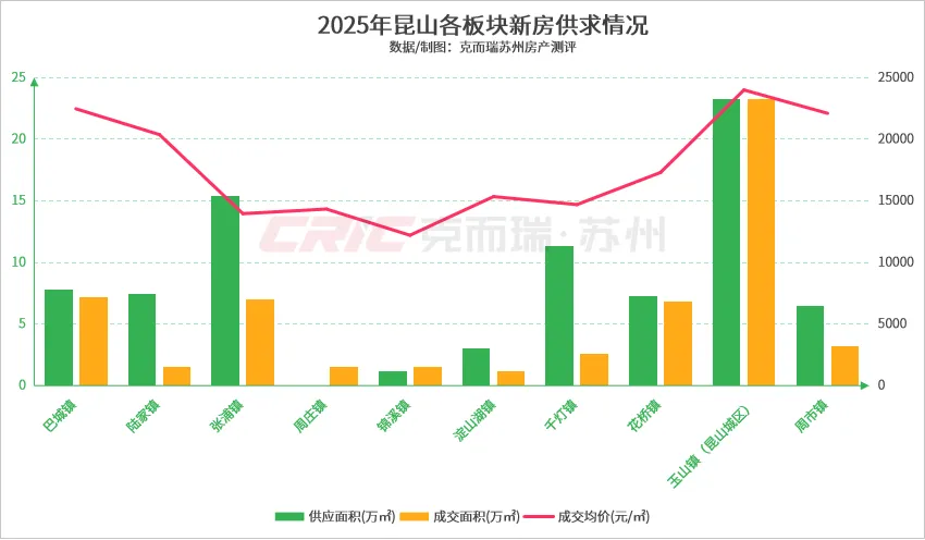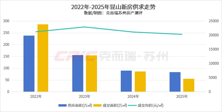 新房供应量约86.5万㎡,成交量约56万㎡,成交均价约20300元/㎡,这是2025年昆山的新房供求数据。