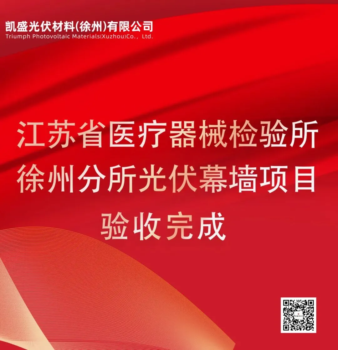 凯盛光伏材料(徐州)有限公司首个示范项目——江苏省医疗器械检验所徐州分所光伏幕墙项目近期已成功完成验收!