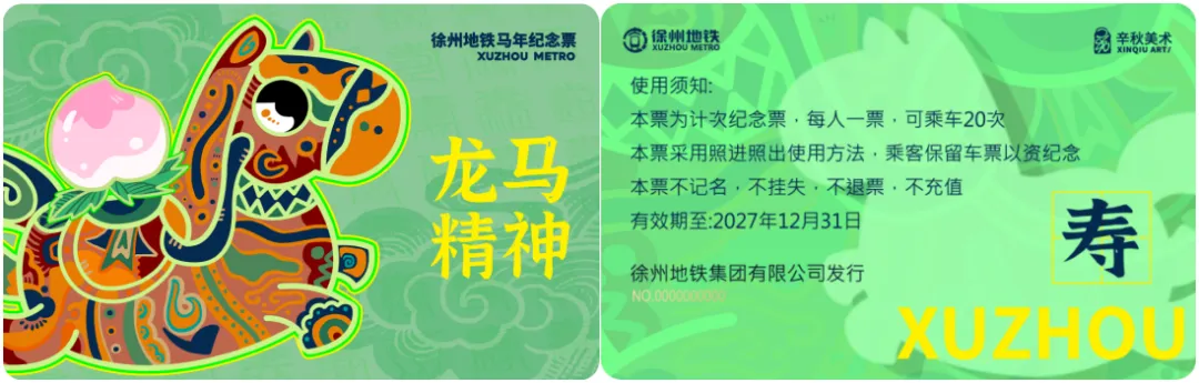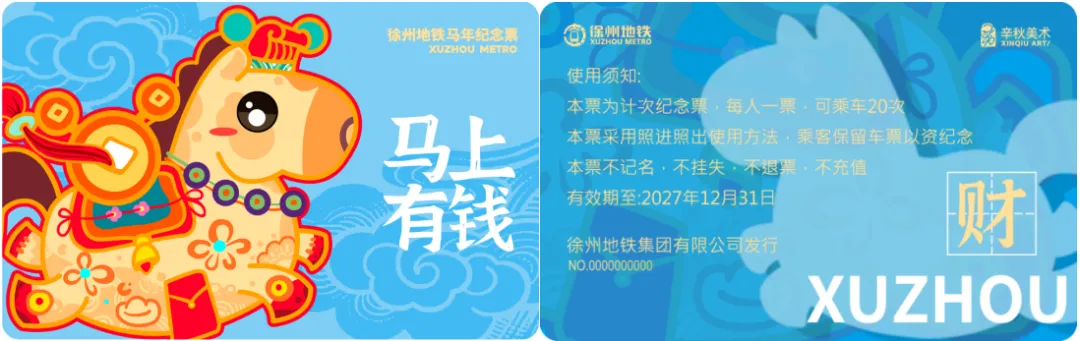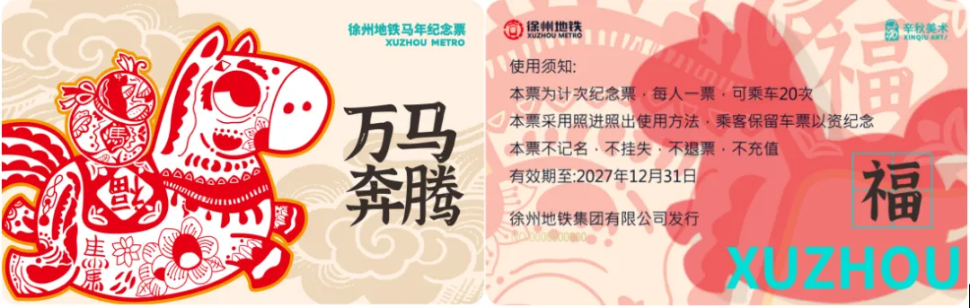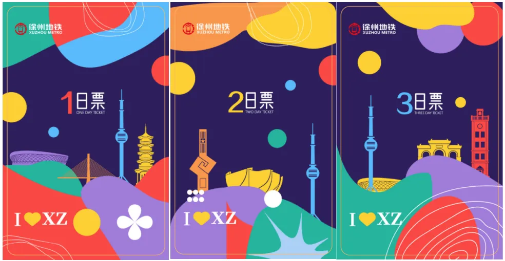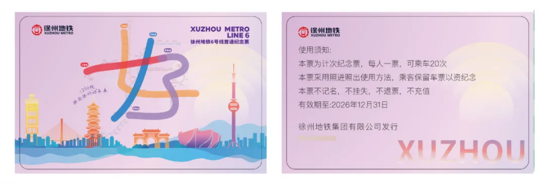 在徐州地铁APP文创商城及车站售卖,仅限在地铁范围内使用,限单人、单次、规定有效期内使用,不限里程。部分纪念票票面见下图: